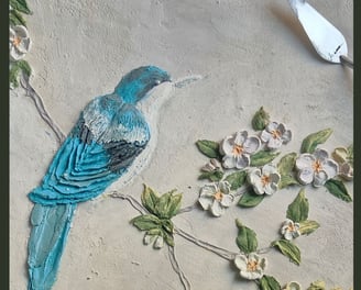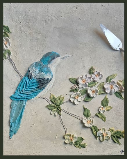 Step into the serene beauty of nature with this intricate sculpture painting, showcasing a delicate bird perched on an apple tree branch. The combination of three-dimensional texture and a soft color palette adds depth and realism, making the scene come alive. This stunning artwork is perfect for nature lovers and art enthusiasts alike, capturing the grace of a bird resting on a blossoming tree. Whether you want to bring a touch of the outdoors into your home or simply admire the artistry, this sculpture painting is a beautiful reminder of nature's delicate beauty.