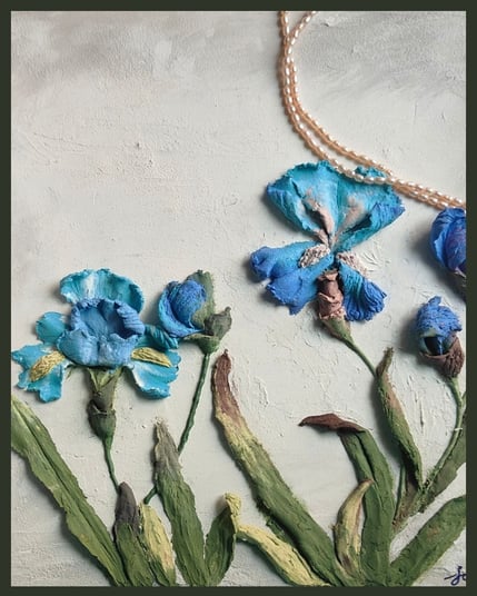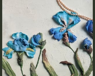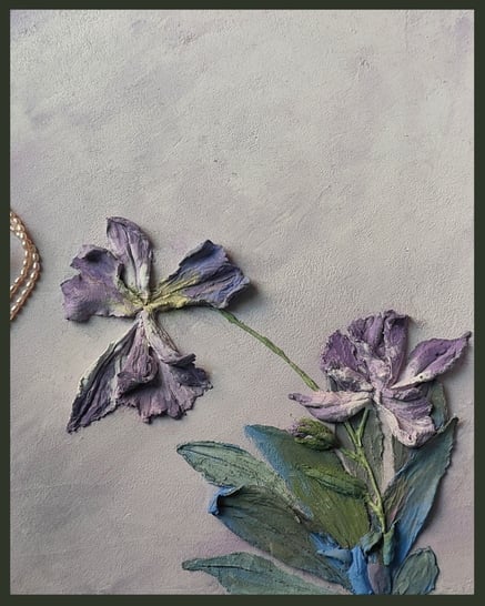 Introducing a breathtaking sculpture painting of Irish flowers, skillfully crafted to showcase the delicate elegance of these blue blossoms. The texture and dimension of the petals bring the flowers to life, making them appear as if they’re gently swaying in the breeze. This piece captures the vibrant beauty of nature while adding a touch of artistic flair to your space, blending the charm of florals with the richness of three-dimensional art.