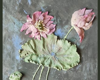 Presenting a captivating sculpture painting of a lotus flower resting delicately on a lotus leaf. The intricate details and rich textures bring this iconic symbol of purity and tranquility to life. The gentle blend of colors and sculpted layers add a three-dimensional depth that draws you into the serene beauty of the scene. Perfect for those who appreciate the harmony between art and nature, this piece is a unique addition to any collection.