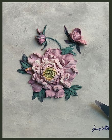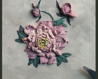 Embrace the lush beauty of a fully bloomed Terry Peony with this intricate sculpture painting. Each petal is delicately sculpted to capture the rich texture and layers of this stunning flower, bringing it to life on your walls. Perfect for adding a touch of elegance and warmth to any space, this handcrafted artwork radiates the beauty of nature with every detail. Elevate your home decor with a piece that blends art and nature in the most captivating way.