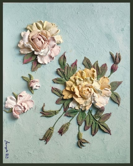 Add a touch of timeless elegance to your walls with this handcrafted Rose sculpture painting. With its soft pastel tones and detailed texture, this piece captures the beauty and grace of blooming roses, perfect for bringing a sense of serenity and sophistication to any room. Each petal is sculpted with care, making it a perfect piece to enhance the ambiance of your living space, office, or gallery.